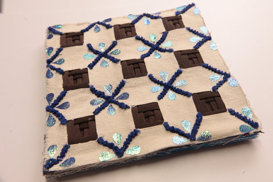 Azulejo Textil N° 19. De la Serie Titulada "Para la mujer de los Azulejos"